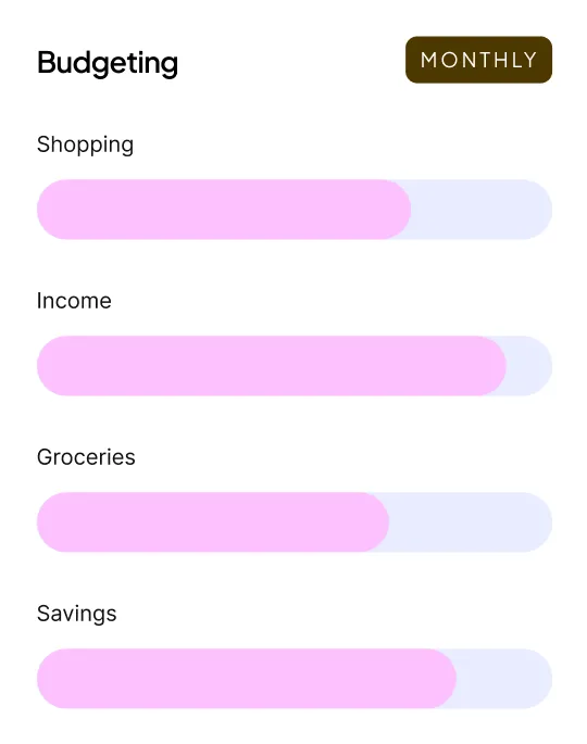 Budgeting and expense tracking Take control of your finances with our intuitive budgeting and expense-tracking solution. Easily manage your income